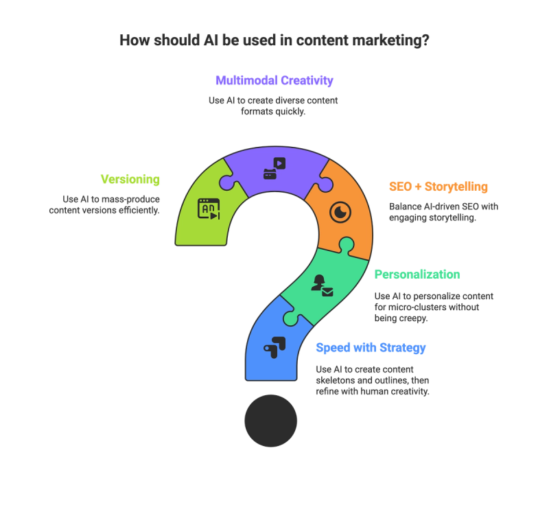 - Let AI handle grunt work. Drafting, SEO analysis, first-cut videos. Save the final story arc for humans.