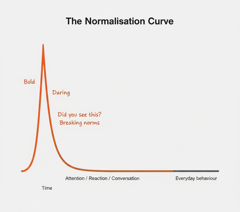 The best norm-breaking marketing feels obvious later. Not because it was basic, but because it was precise.