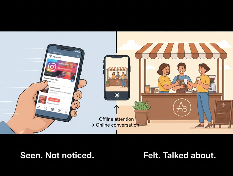 In a store, at an event, or within a neighbourhood, the interaction feels natural. Not forced. Not intrusive. And when designed well, it naturally leads to social media amplification.