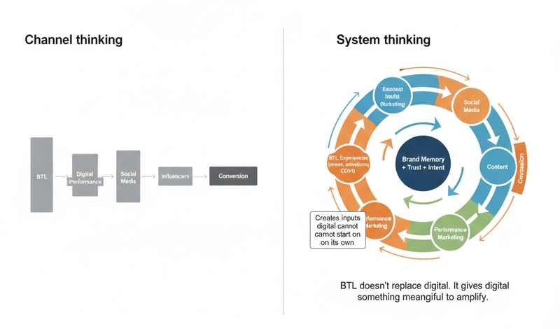 Performance marketing is moving towards integrated marketing systems where different touchpoints support each other. BTL fits naturally here because it creates inputs digital and social media alone cannot.