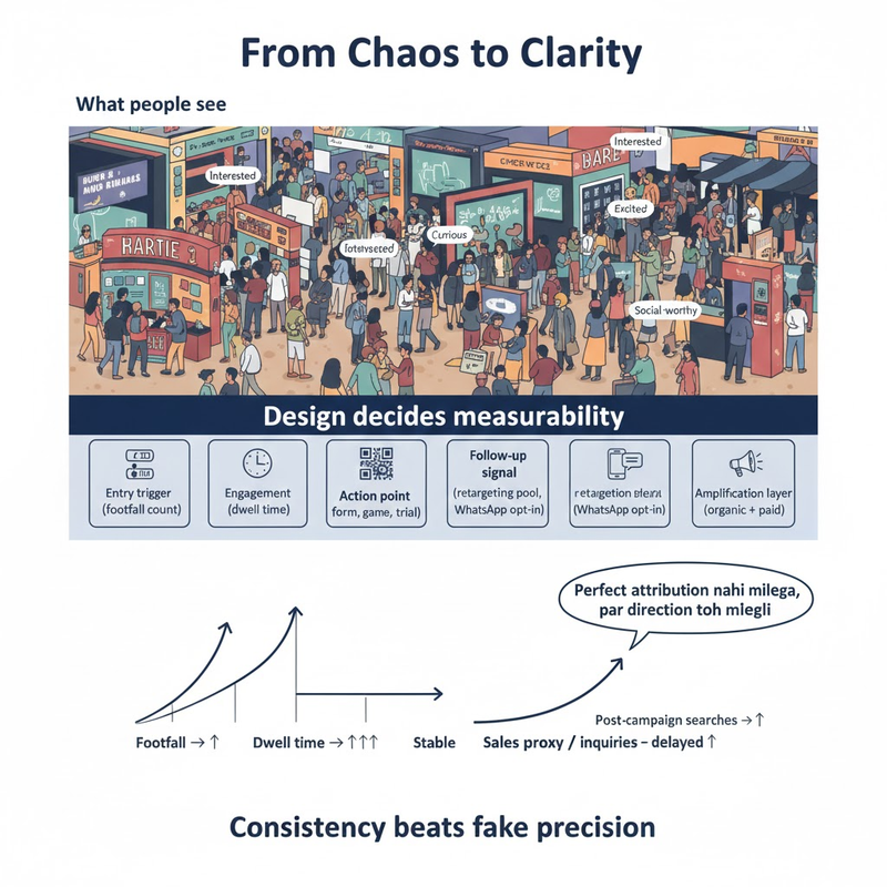 If the only takeaway is that people looked interested, then yes, measurement will feel vague. But if the experiential marketing setup is designed to capture intent, interaction depth, or follow-up behaviour, clarity improves quickly.