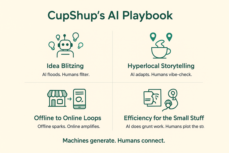 At CupShup, we use AI for idea sprints. It floods us with options. We then filter the fluff and polish the gems.