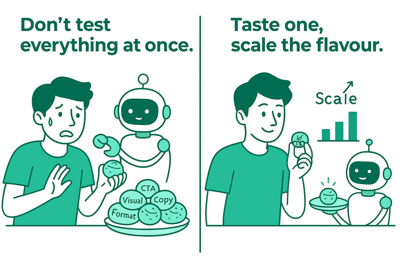 As Sourav from performance campaigns puts it, "Testing everything with AI without human filters is like trying 10 pani puri fillings at once. You’ll end up with a stomach ache, not insights".