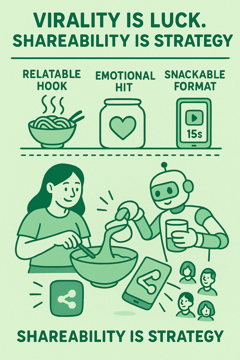 Virality is like love at first sight. Magical when it happens, impossible to plan. Shareability though? That you can engineer.