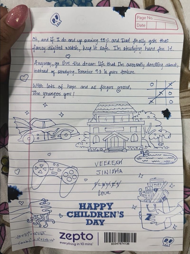 If you ordered around Children’s Day, your order may have come with a sheet filled with tic tac toe, FLAMES and simple doodles, along with a short note to “the younger you”. It looked like the last page of a Class 4 notebook. People loved it. Screenshots filled social media stories and posts.