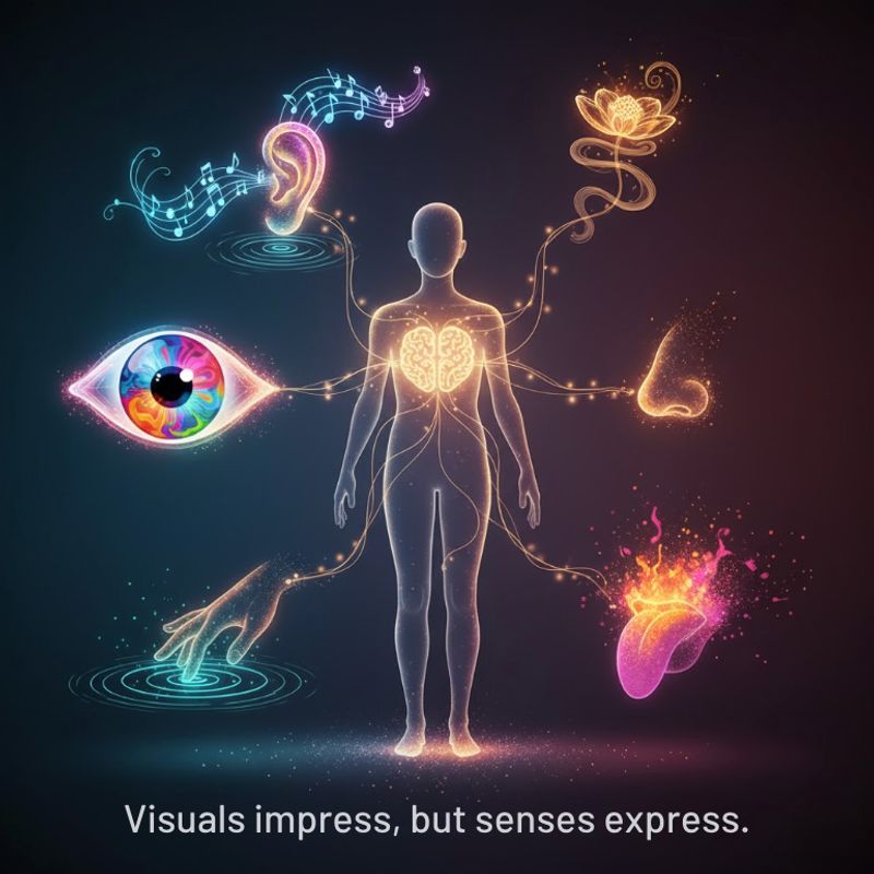 - Layer, don’t scatter. Combine two or three senses for depth. Think texture plus scent, or scent plus sound.