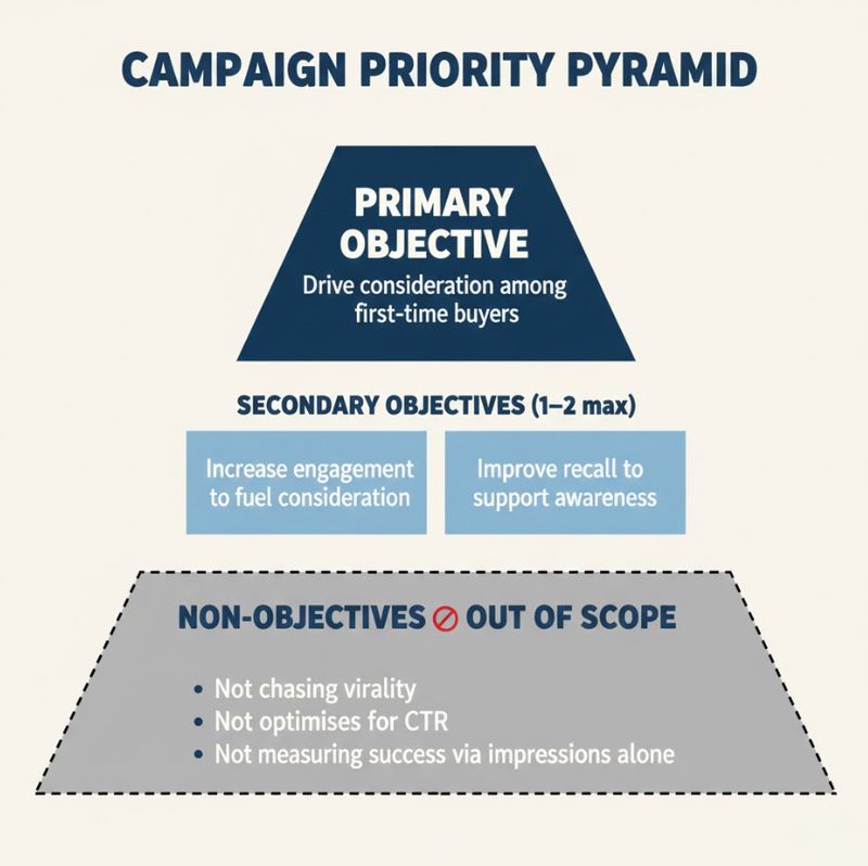 "Awareness, engagement, consideration, conversion” is not an objective. It’s a shopping list.