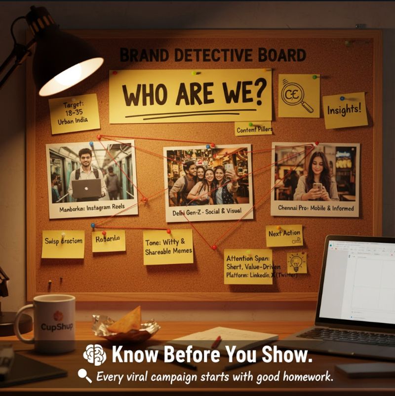 When we plan at CupShup, everything begins with our brand truth, the thing we stand for: Marketing That Moves. Whether it’s a chai cup, a meme, or a full-blown city takeover, every piece should spark a conversation, not just an impression.