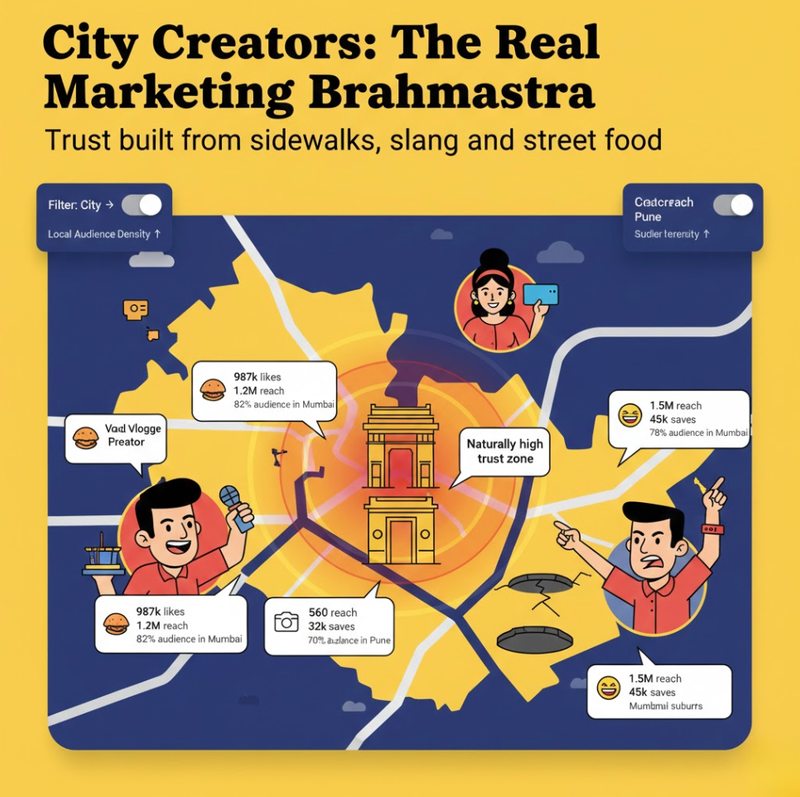 India isn’t one big audience. It is a set of micro communities, each with its own humour, culture, rhythm and habits. Brands that speak to these micro communities win trust faster and convert better. City creators help brands feel like they belong to a place, not just appear in it, which is the core principle behind strong hyperlocal marketing.