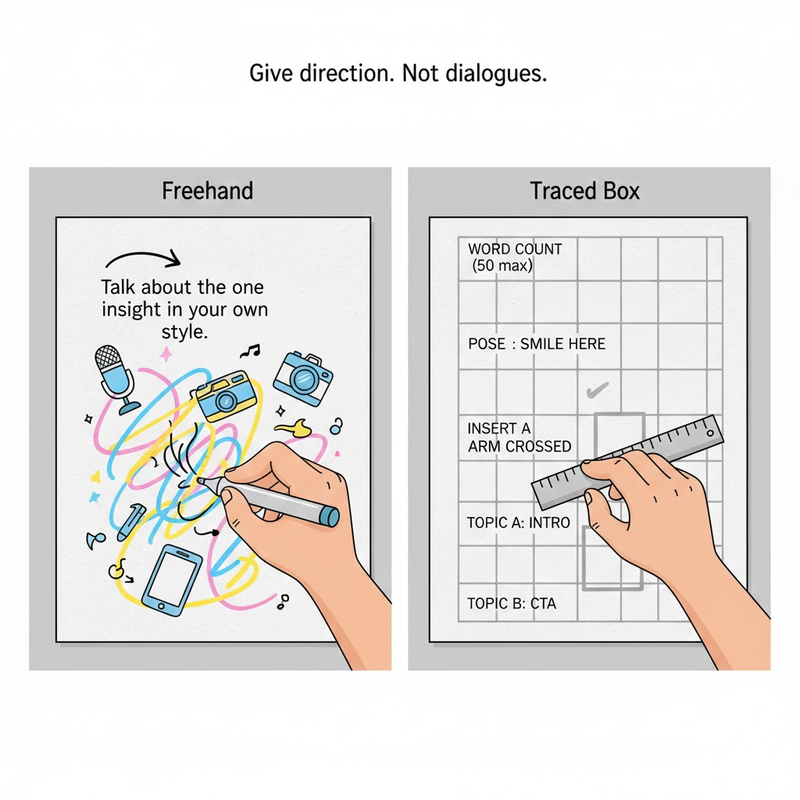 Creators do their best work when they are given freedom. A tight script kills natural behaviour. A clear brief makes their job easy and results in much better marketing output.
