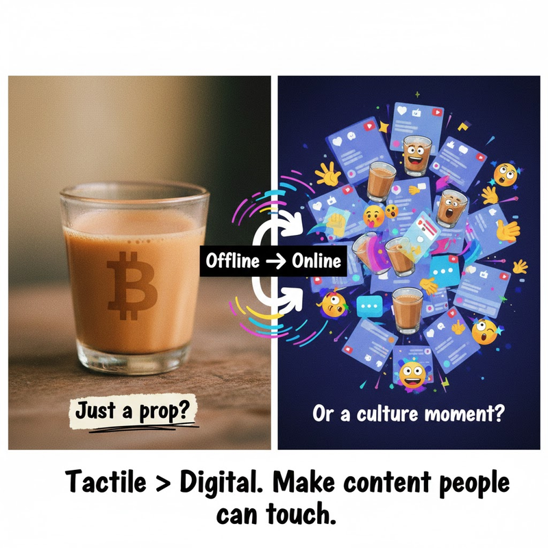 CoinDCX’s Bitcoin Chai Café was a perfect example. The creators had a physical setting, a cultural ritual and an easy hook. The campaign worked because the creators had something real to capture, which made the offline online loop seamless.