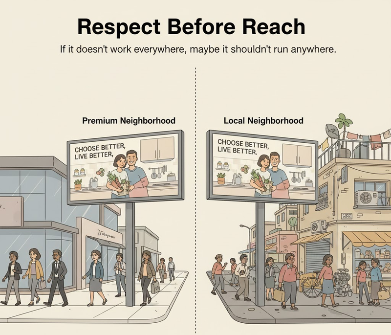 Studies around the world show that premium areas usually get aspirational messaging while lower income areas get messages that feel more transactional or opportunistic. It is unintentional but noticeable.
