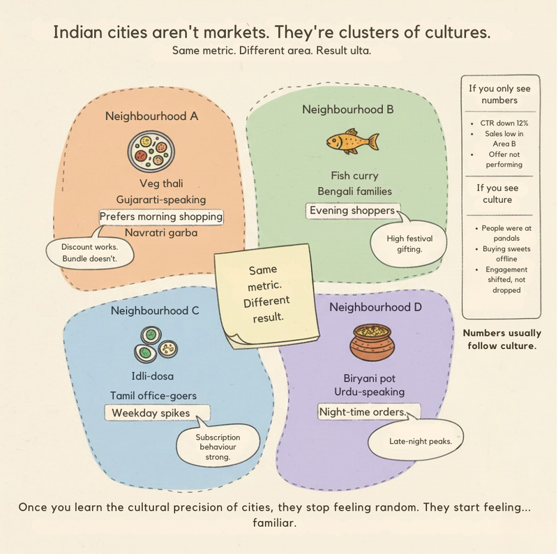 At CupShup, while writing, planning, selling, servicing, and reviewing campaigns together, this reality keeps popping up in conversations. Someone will say it during a brainstorm, someone else will confirm it during execution, and by the end of the day, it becomes obvious that the city behaved exactly how culture said it would.