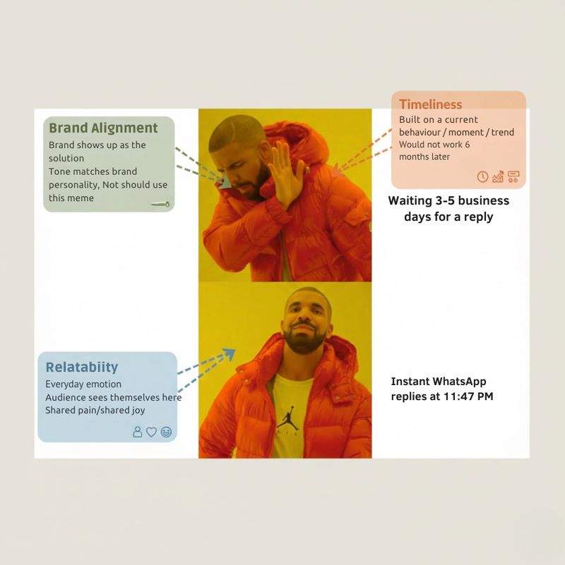 Not every meme fits every brand. And that is perfectly fine. The goal is not to chase trends blindly, but to choose formats and humour styles that feel authentic to the brand’s personality.