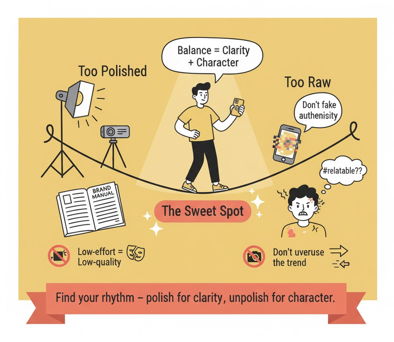We’ve seen brands mistake unpolished for lazy. A 20-second clip with bad sound and no thought behind it isn’t “relatable”, it’s just… bad. The trick is to be intentional about imperfection.